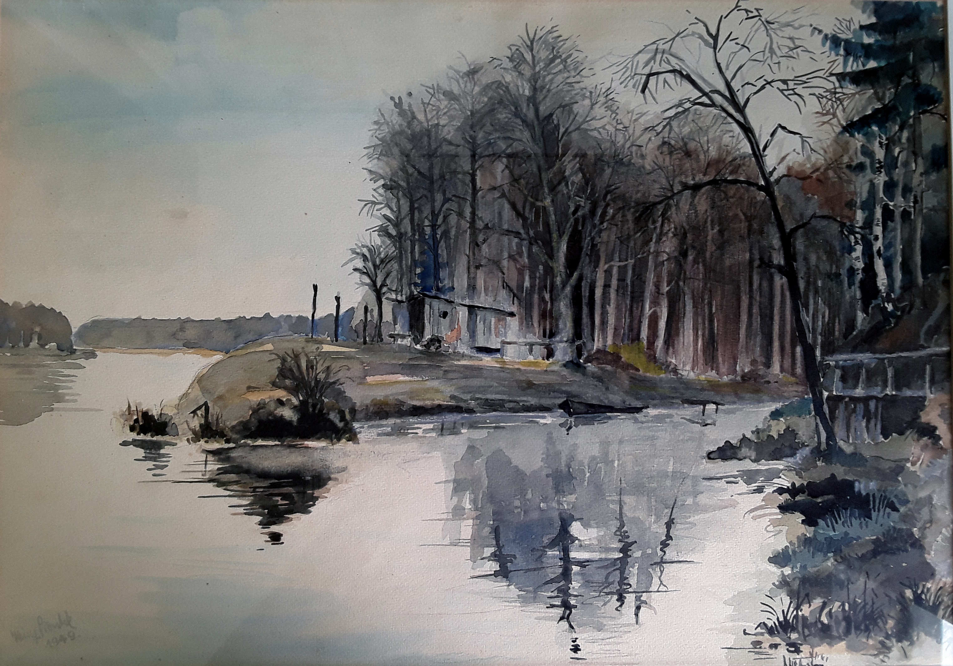 H. Piontek war ein leidenschaftlicher Spaziergänger. Wanderungen in der Natur setzten bei ihm schöpferisches Potenzial frei; mit dem Blick des Malers - eine andere Art seiner künstlerischen Existenz - erkundete er Stadt und Flussufer. Es gelangen ihm dann konzise Schnappschüsse: Fischerhütte an der Mündung der Brenz in die Donau
